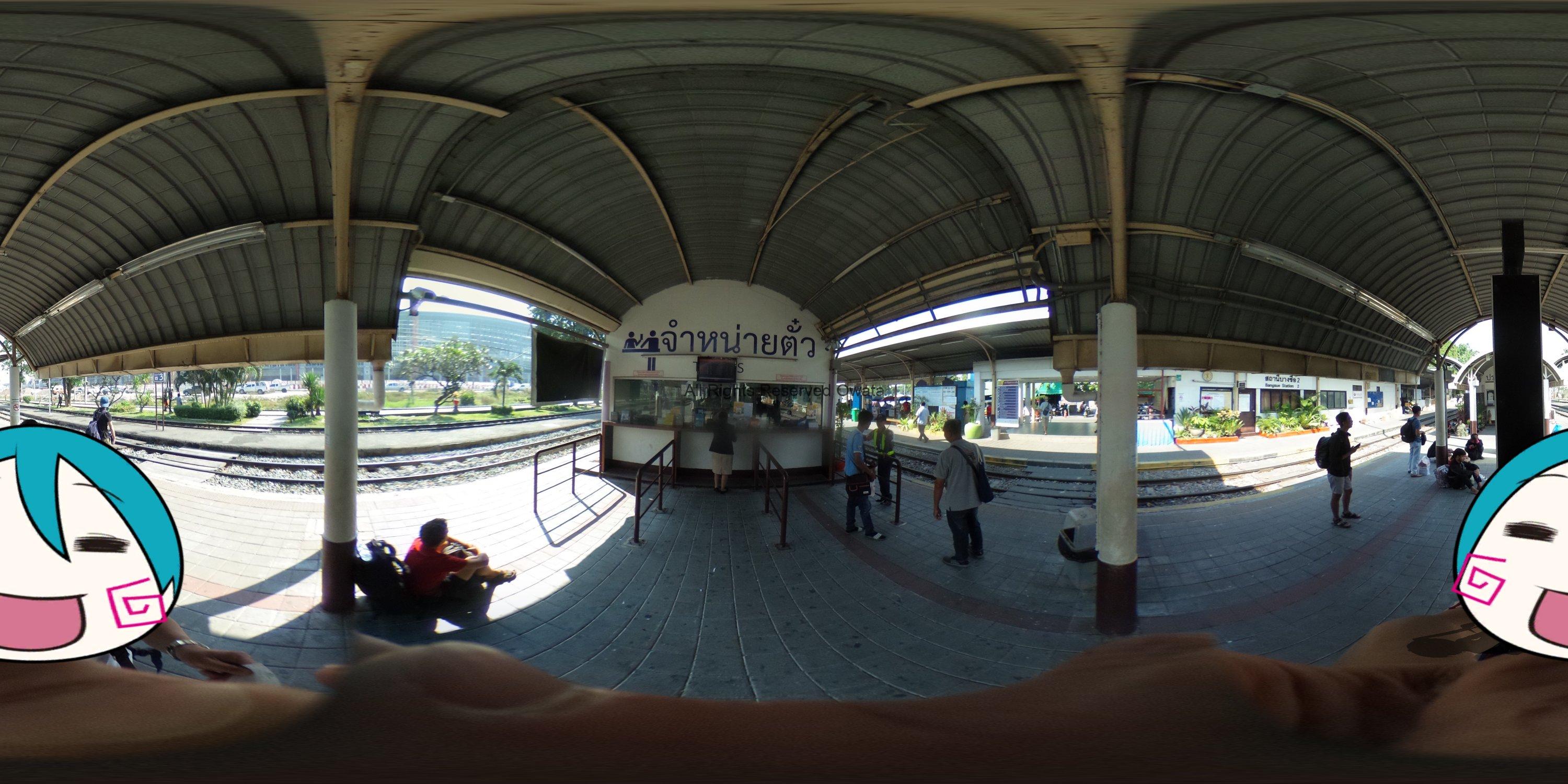 MRT BANG SUEから国鉄BANGSUE JANCTION STATIONに行くと、入口ってないんですなあ。チケット⇒と言う看板の通り線路を歩いていくと、チケットカウンターがあります。